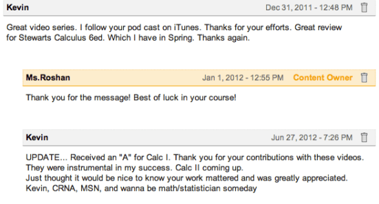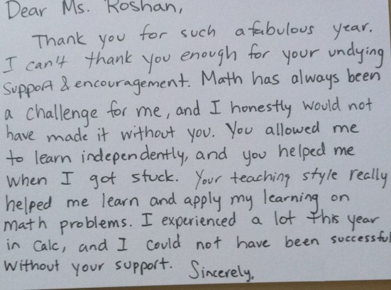 I just wanted to capture two messages that I recently received. As teachers, we all know there is no greater reward than a thank you note.