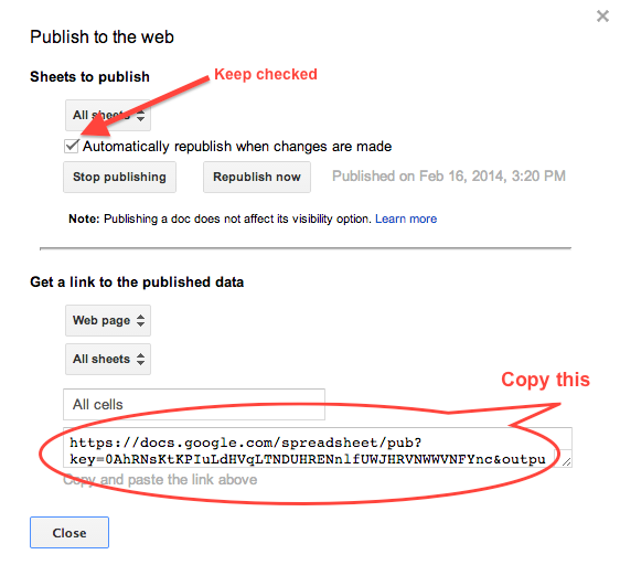 - To make collaborative: Share the Google Spreadsheet (as you’d share any Google Doc)