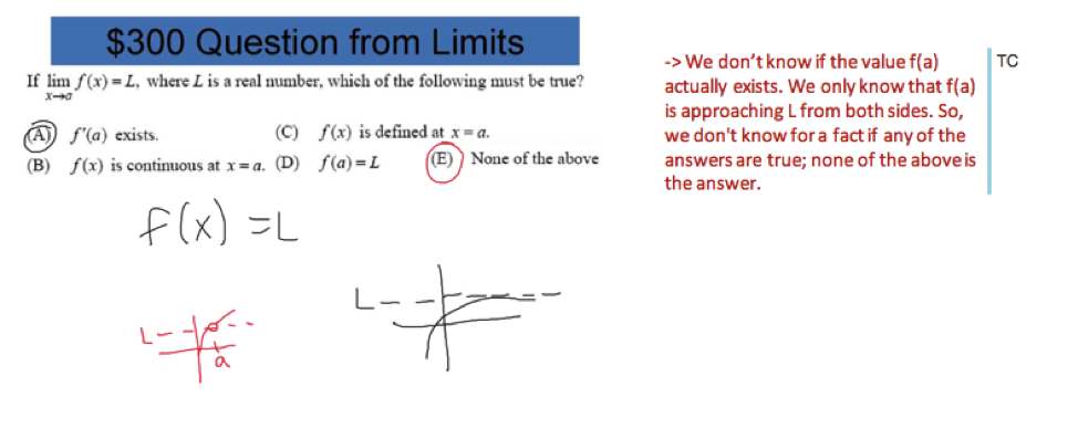 As a class, we discuss the correct answer to the problem students just responded to. We also talk about any test-taking strategies relevant to the problem and brush up on topics from earlier in the year.