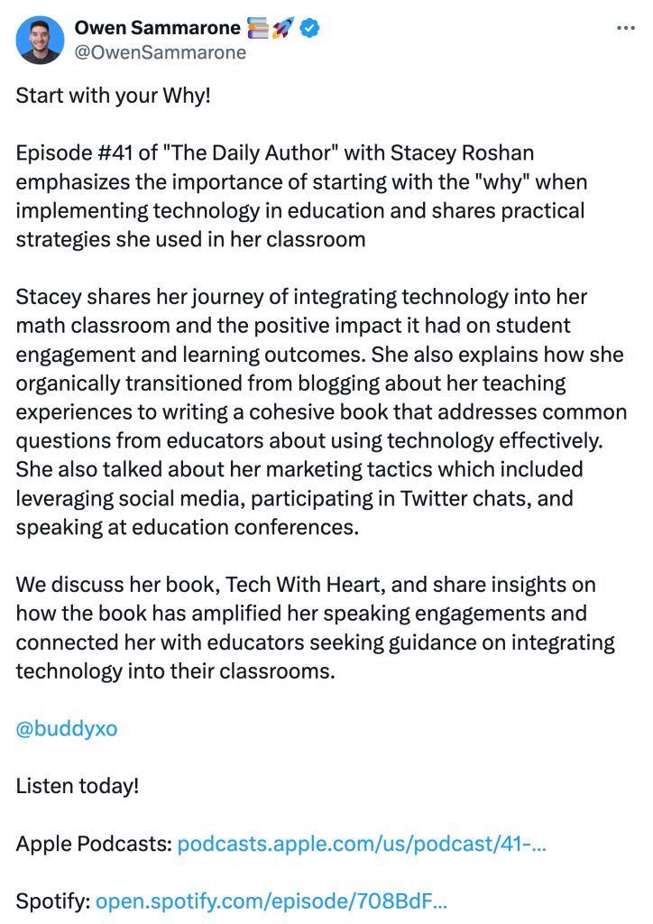 I had the opportunity to join Owen Sammarone on his podcast, The Daily Author, to discuss how my book Tech with Heart came to life and how my career has evolved since its publication.